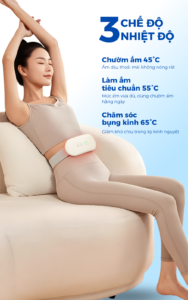 Chế độ chườm ấm nhiệt hồng ngoại 3 mức nhiệt (thấp – trung bình – cao), giúp làm dịu cơn co thắt, thư giãn nhanh chóng vùng bụng.