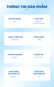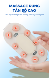 Máy massage bụng B1 là đai massage bụng kinh chuyên dụng, tích hợp 8 đầu massage mô phỏng tay người, kết hợp 3 cấp độ rung và 3 mức chườm ấm nhiệt hồng ngoại, giúp làm dịu nhanh cơn co thắt, giảm đau bụng kinh và thư giãn vùng bụng – eo – lưng dưới hiệu quả. Thiết bị hỗ trợ làm mềm cơ, tăng tuần hoàn máu và giảm mỏi cơ cho người ngồi lâu hoặc vận động nhiều.