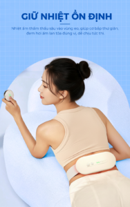 Thiết kế đai quấn 3D ôm sát, chất liệu mềm mại, thoáng khí, dùng thoải mái quanh năm. Máy sử dụng pin sạc 1800mAh không dây, thời gian dùng khoảng 2 giờ, tiện lợi mang theo khi đi làm, đi học hoặc du lịch. Ngoài hỗ trợ ngày “đèn đỏ”, máy còn có thể dùng massage lưng dưới, đùi cho cả nam và nữ.