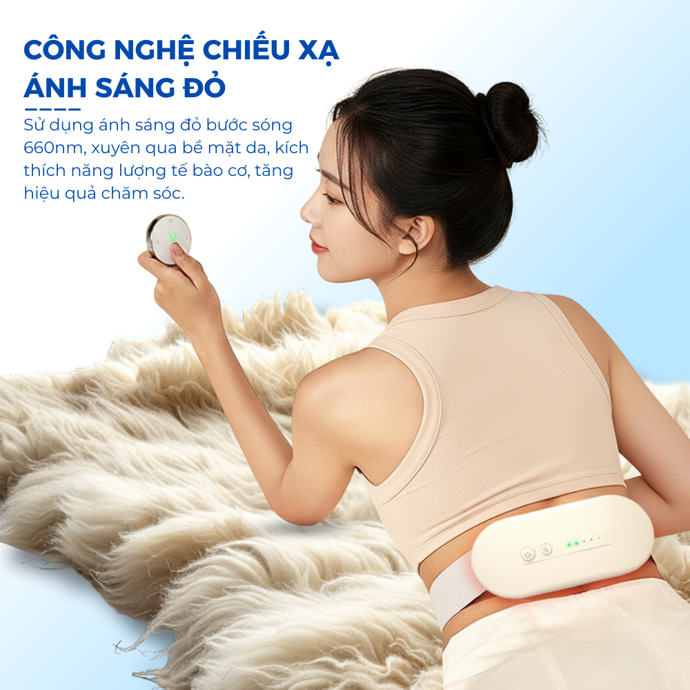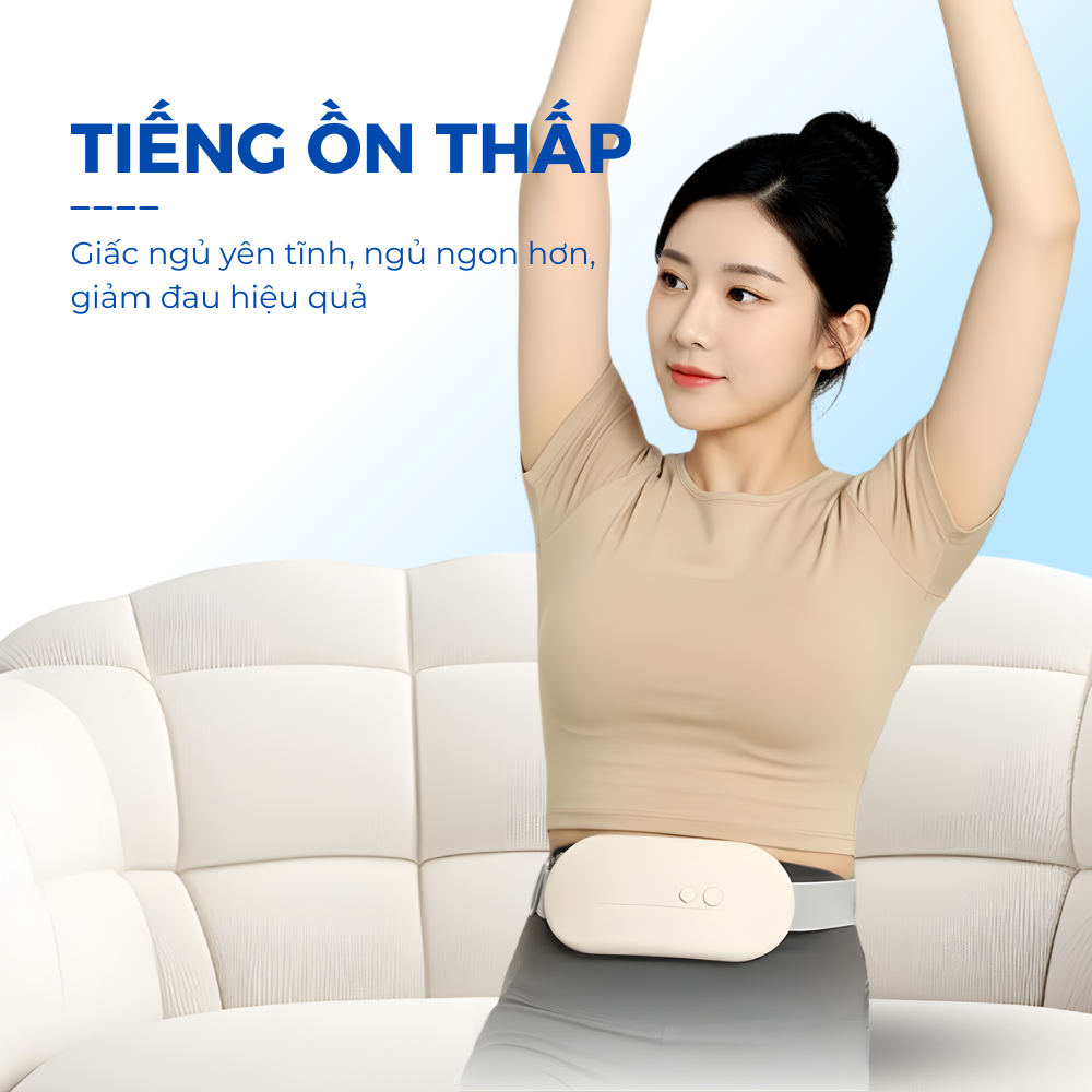 Chế độ chườm ấm nhiệt hồng ngoại 3 mức nhiệt (thấp – trung bình – cao), giúp làm dịu cơn co thắt, thư giãn nhanh chóng vùng bụng.