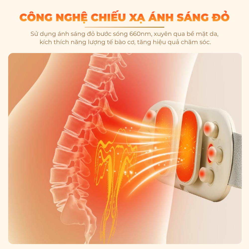 Giảm đau, làm mờ rạn da: Nhờ bước sóng đỏ 660nm, máy massage bụng mini này thúc đẩy tuần hoàn máu, kích thích sản sinh collagen, giúp tái tạo tế bào và cải thiện vùng da rạn sau sinh.