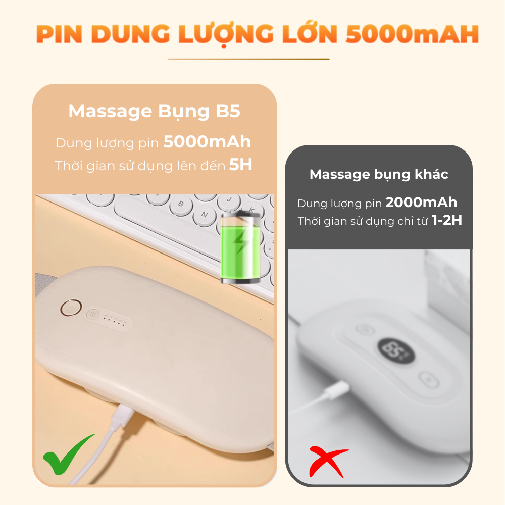Dung lượng pin: 5000mAh (sử dụng liên tục 1.5–3 giờ)